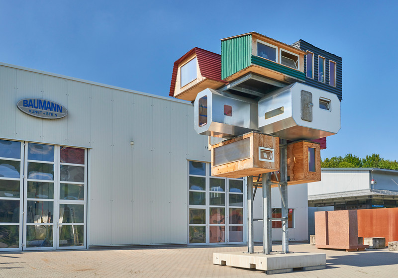 ...der Dämon unserer Zeit scheint sich nirgends so übermächtig und so wirklichkeitsbestimmend zu zeigen, wie in der Verwandlung der Welt in eine lebensfeindliche, unkontrollierbare, mondtote Giftmülldeponie. Diesem Dämon, also unserer aller Besessenheit, baut Baumann Kathedralen, damit der Geist, der uns vermüllt, sich vielleicht doch noch zwingen läßt, einen Teil seiner Macht an uns abzutreten, und wir im Gegenzug uns bereit finden, den Müll und das Gift als unsere Schicksalsmacht anzuerkennen und ihnen die höchste Aufmerksamkeit zu widmen.
