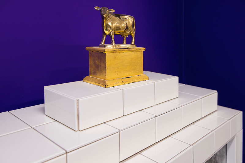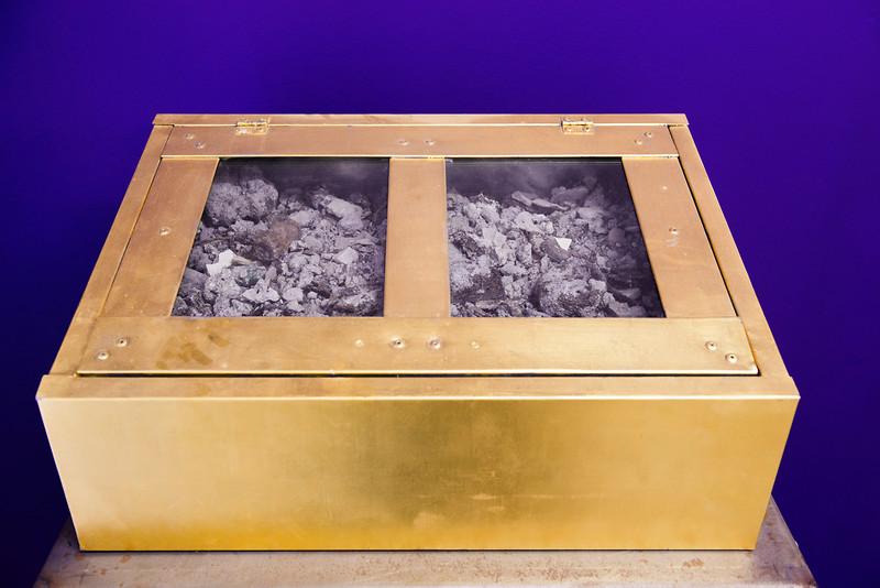 Schlacke aus der Müllverbrennung, Keramik, Messing Blattgold